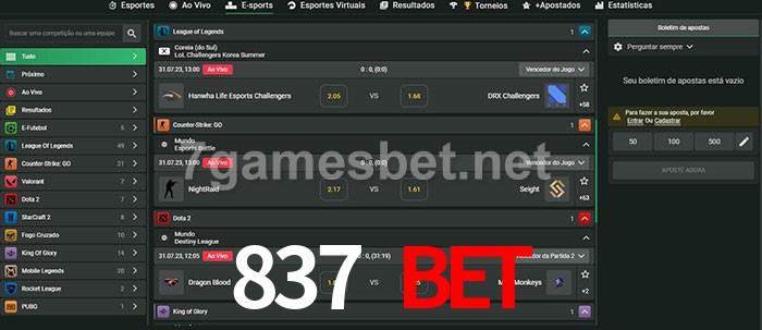 A aposta 837 bet oferece aos jogadores a experiência mais conveniente de apostas em eSports!